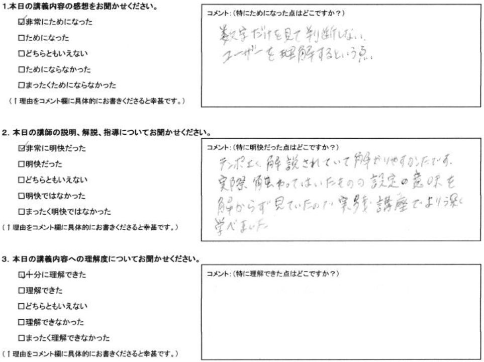 実際、触ってはいたものの設定の意味を解らず見ていたから実践講座でより深く学べました。