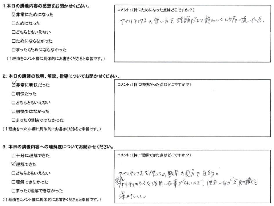 アナリティクスの使い方を理論立てて詳しくレクチャー頂いた点